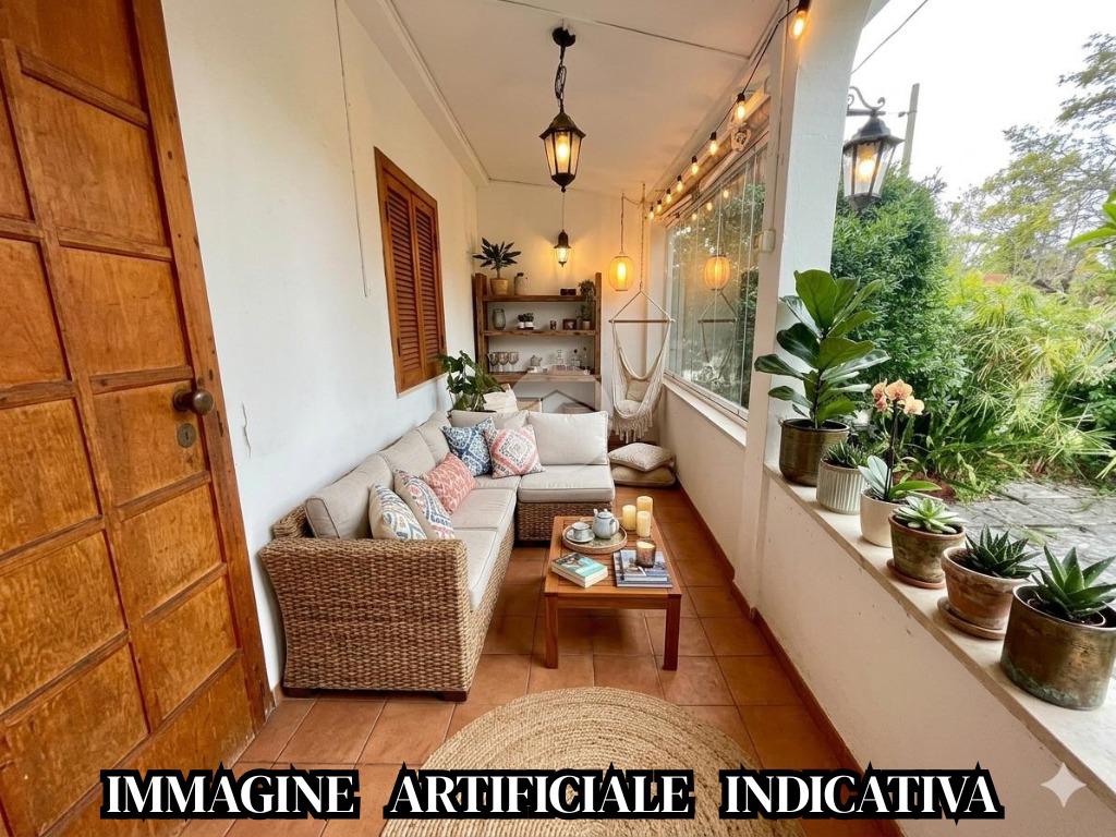 Appartamento in villa di 70 mq al piano terra composto da: soggiorno con angolo cottura, disimpegno, due camere e bagno. Veranda di 10 mq e corte mattonata di 30 mq.