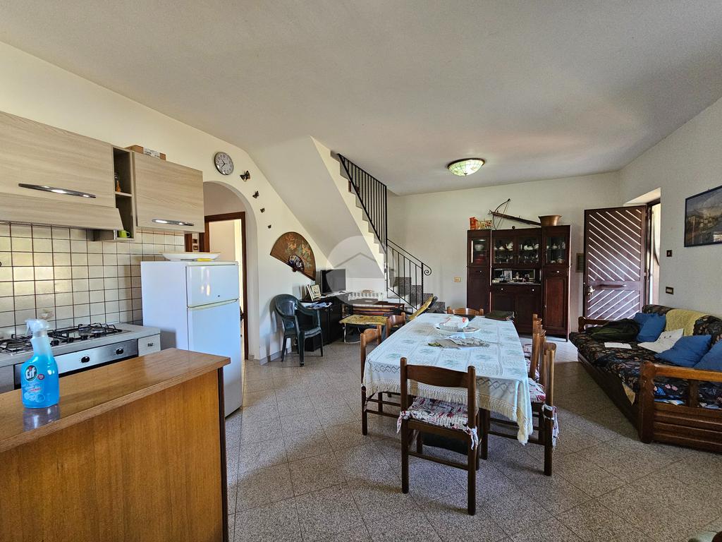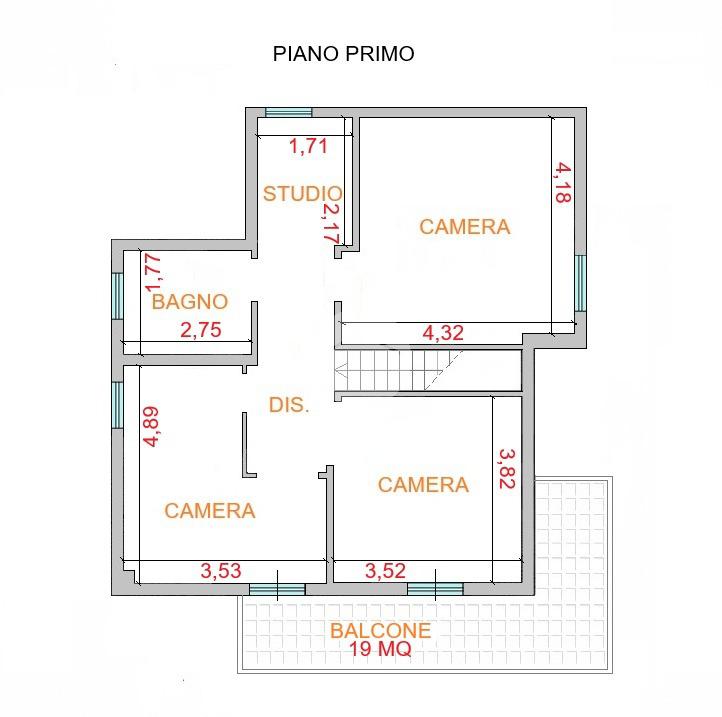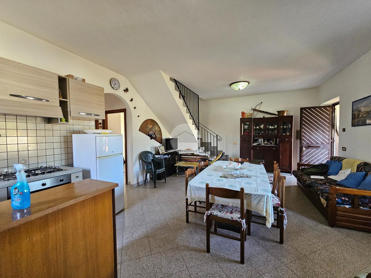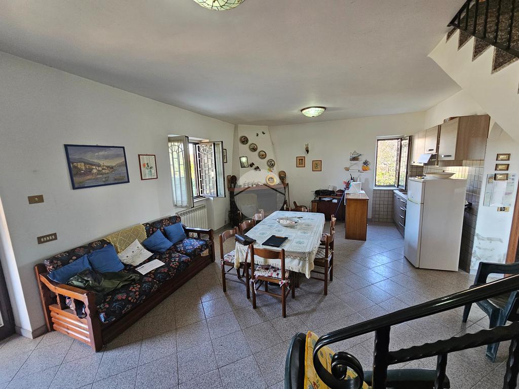 Piano terra di 70 mq composto da: soggiorno con angolo cottura, disimpegno, camera, studio e bagno; Piano primo di 70 mq composto da: 3 camere, studio e bagno. Veranda di 26 mq, balcone di 20 mq e giardino di 800 mq.