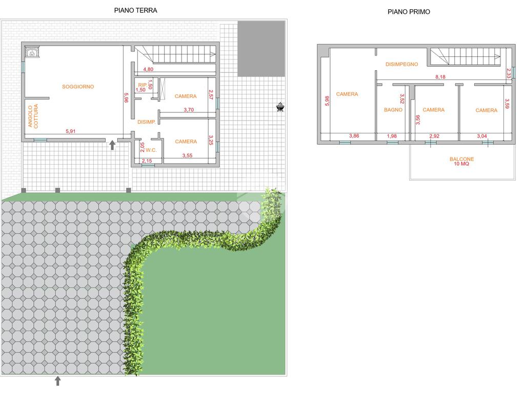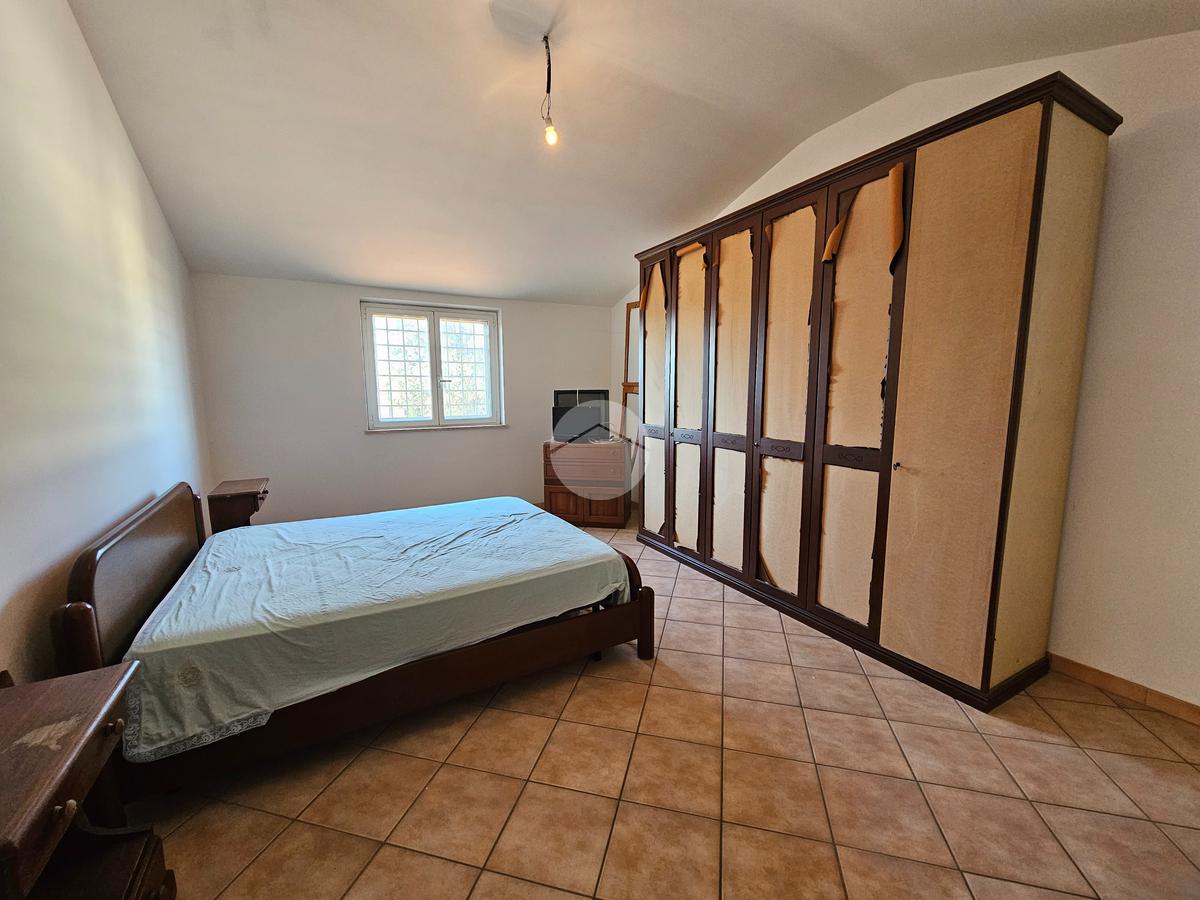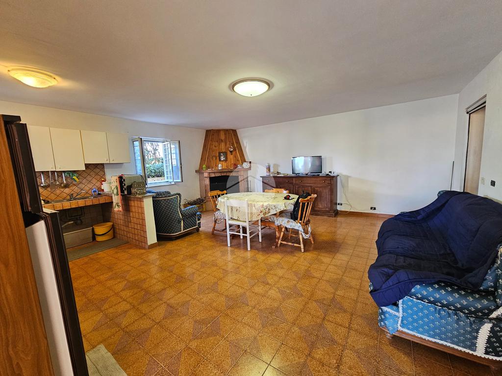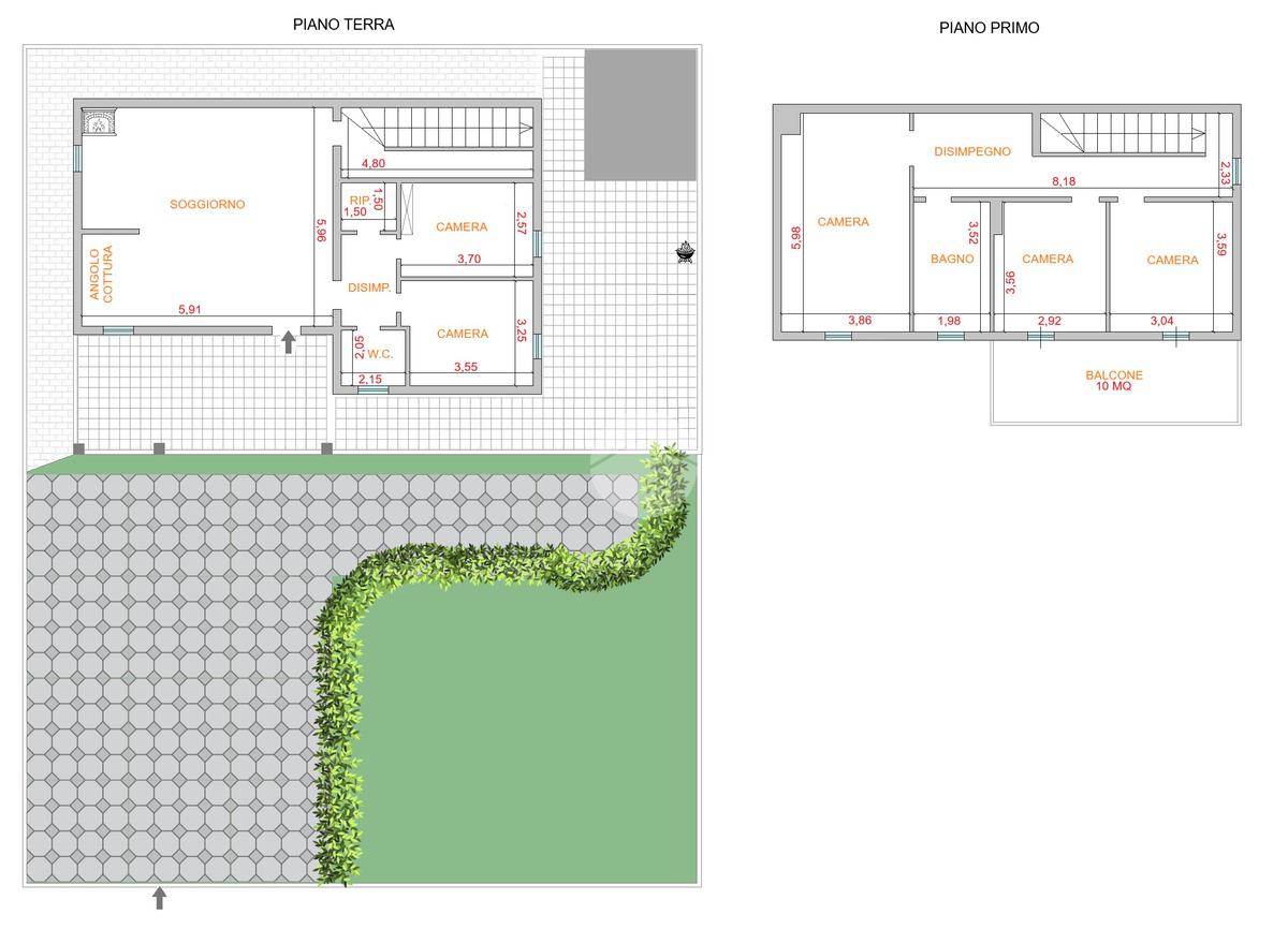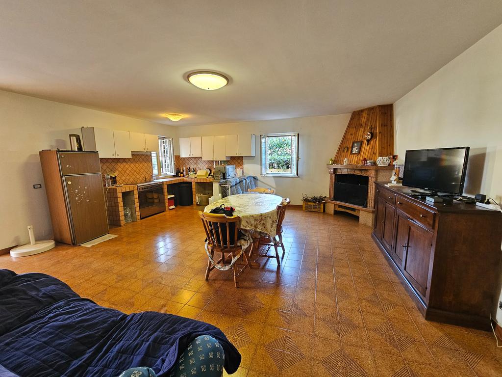 Piano terra di 80 mq composto da: soggiorno con angolo cottura, disimpegno, 2 camere, ripostiglio e bagno; Piano primo di 70 mq composto da: 3 camere, disimpegno e bagno. Veranda di 20 mq, balcone di 10 mq e giardino di 800 mq.